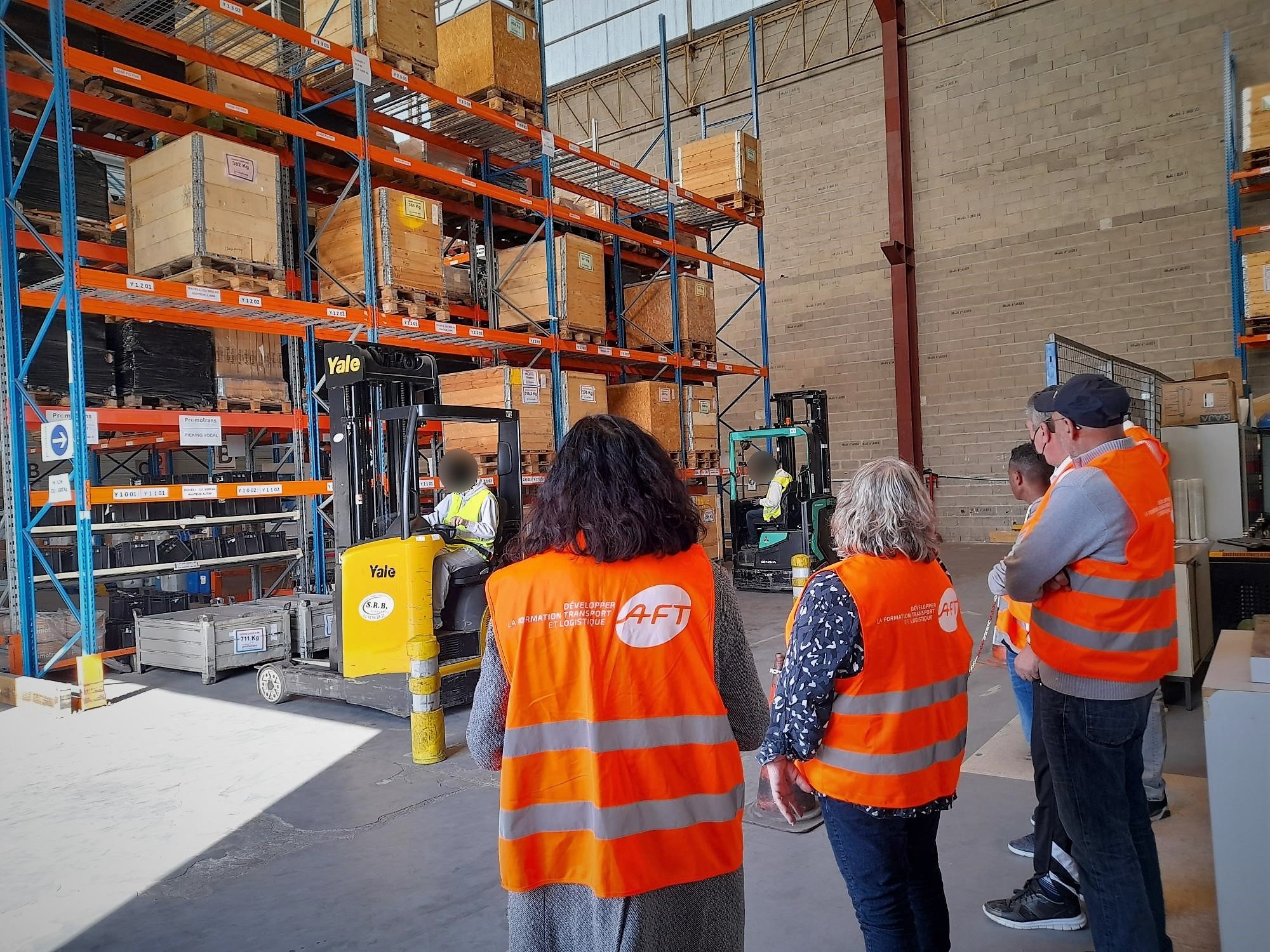 Puis une visite de la plateforme logistique a permis au groupe de découvrir les stagiaires en situation d'apprentissage sur l'utilisation de chariots élévateurs ainsi que l'environnement sécurisé de l'entrepôt.
