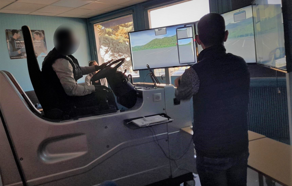 Enfin un atelier avec le simulateur de conduite du centre a été animé par le coordinateur pédagogique afin de permettre aux salariés de faire un essai sur la conduite en transport de marchandises simulant les conditions réelles.