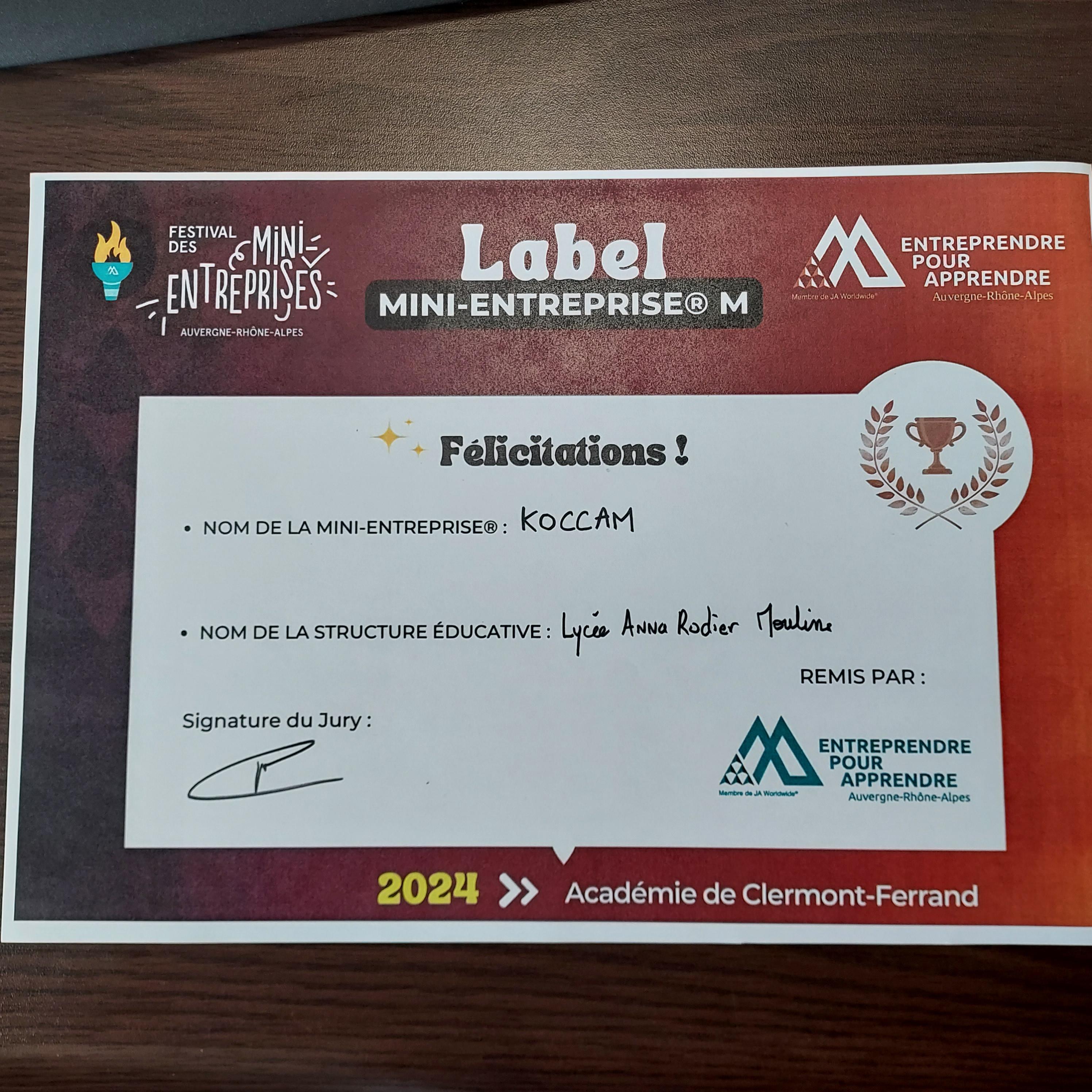 Les élèves de seconde GATL ont participé au Festival des Mini Entreprises le jeudi 23 mai 2024 et ont été récompensé du label de bronze de l'innovation de la Mini Entreprise M.