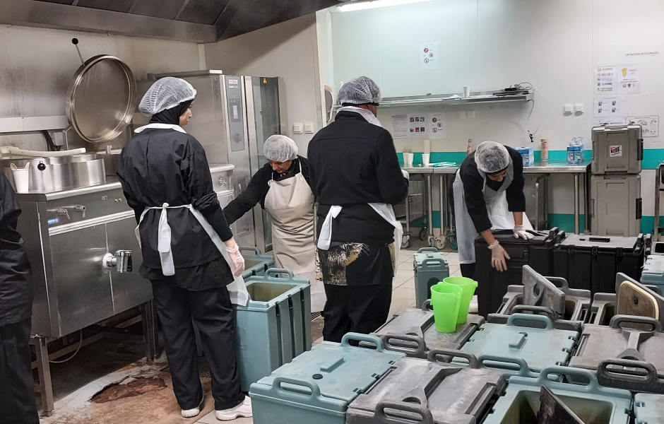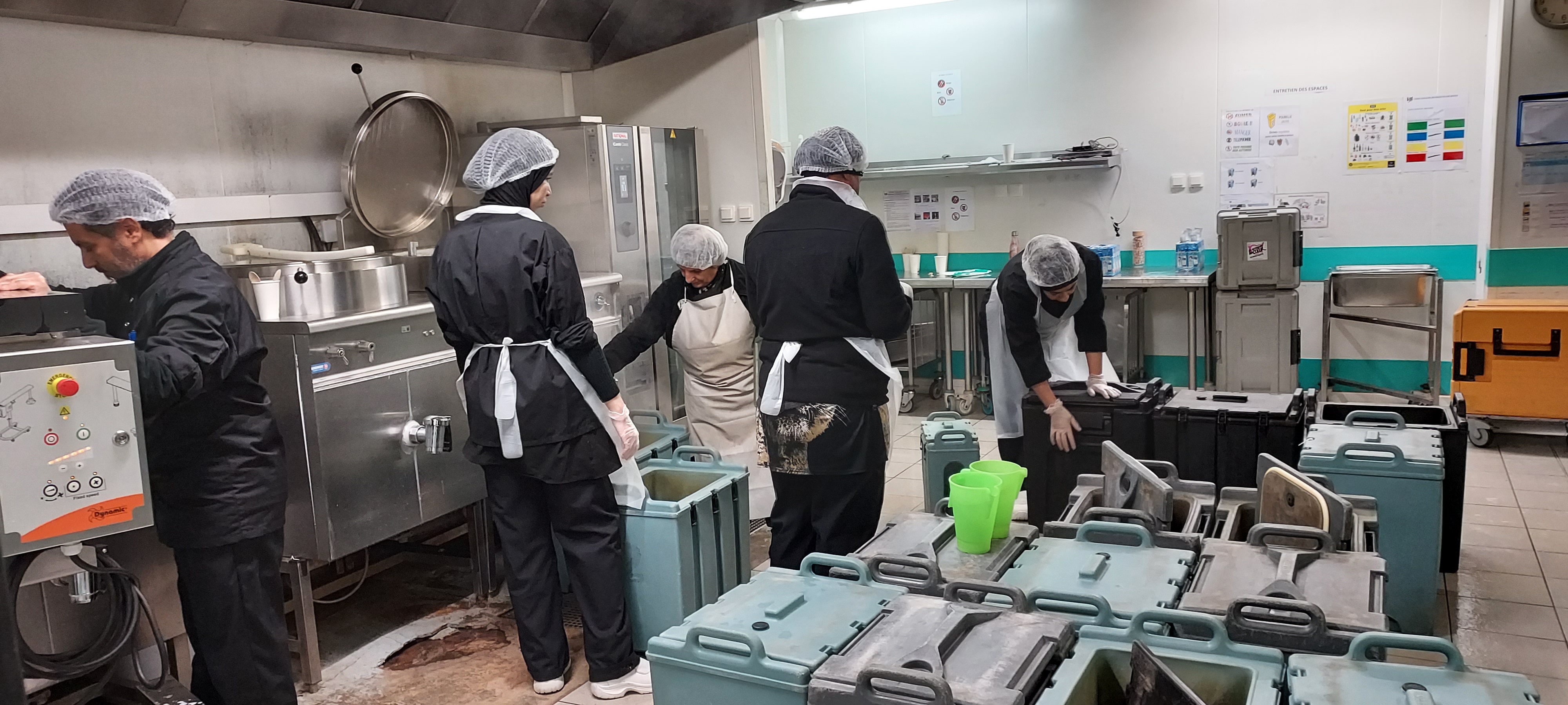 L'ACI d'Aubervilliers est composée de 110 salariés qui assurent l'ensemble des opérations de la réception des produits alimentaires à la distribution de 3 000 repas par jour réalisée par des bénévoles.