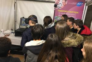 Sur le Pôle#5 (automobile, transport, magasinage), les jeunes visiteurs ont été mis à contribution grâce au dispositif de réalité virtuelle de l'AFT : prise de commande d'un client et organisation d'une prestation transport, conduite d'un poids-lourds, préparation de commande et conduite de chariot élévateur... une première approche de la réalité des transports et de la logistique pas si éloignée du quotidien des professionnels