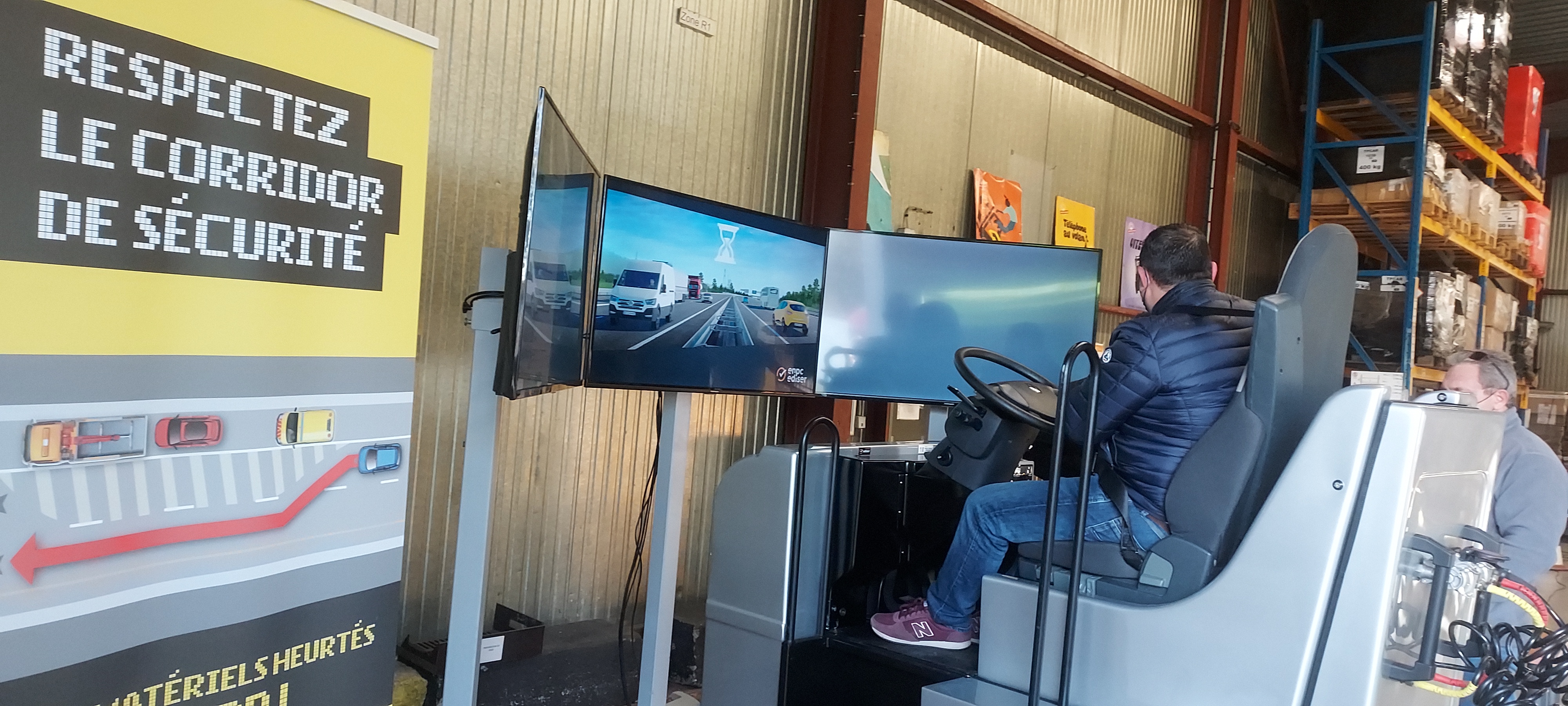 Cet atelier est animé par deux formateurs AFTRAL. L’objectif est de mettre les contrevenants dans des situations où le respect des distances de sécurité mais aussi l’utilisation des distracteurs peuvent entraîner des conséquences graves sur le comportement des conducteurs.