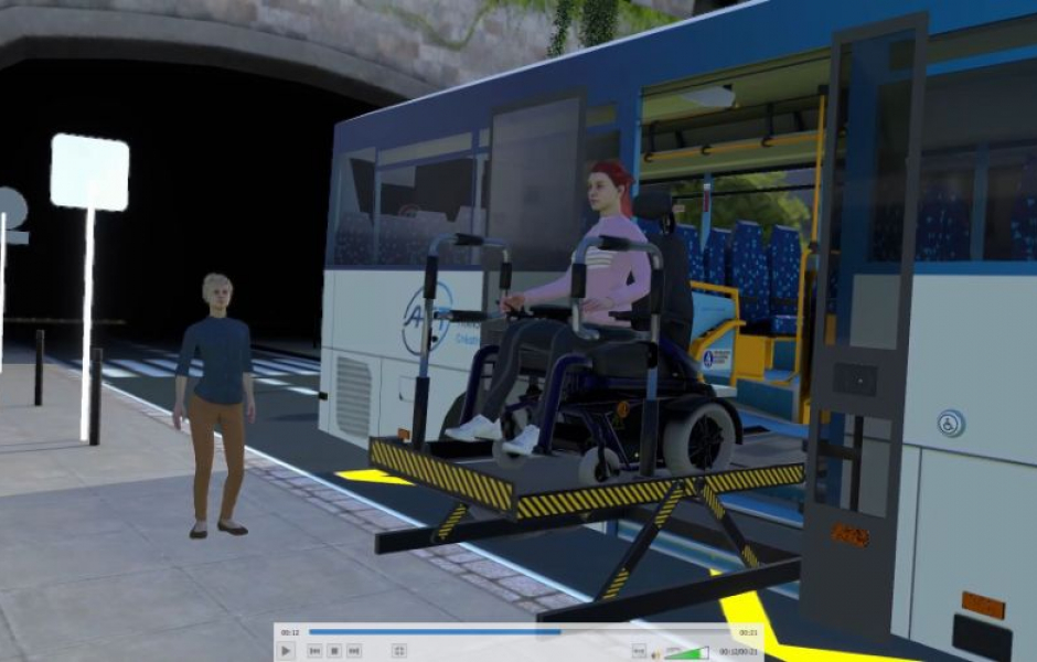Afin de fournir un outil d'entraînement aux conducteurs de car interurbain ou autocar, l'AFT propose une expérience formative sur la procédure de prise en charge d'un usager en fauteuil roulant.