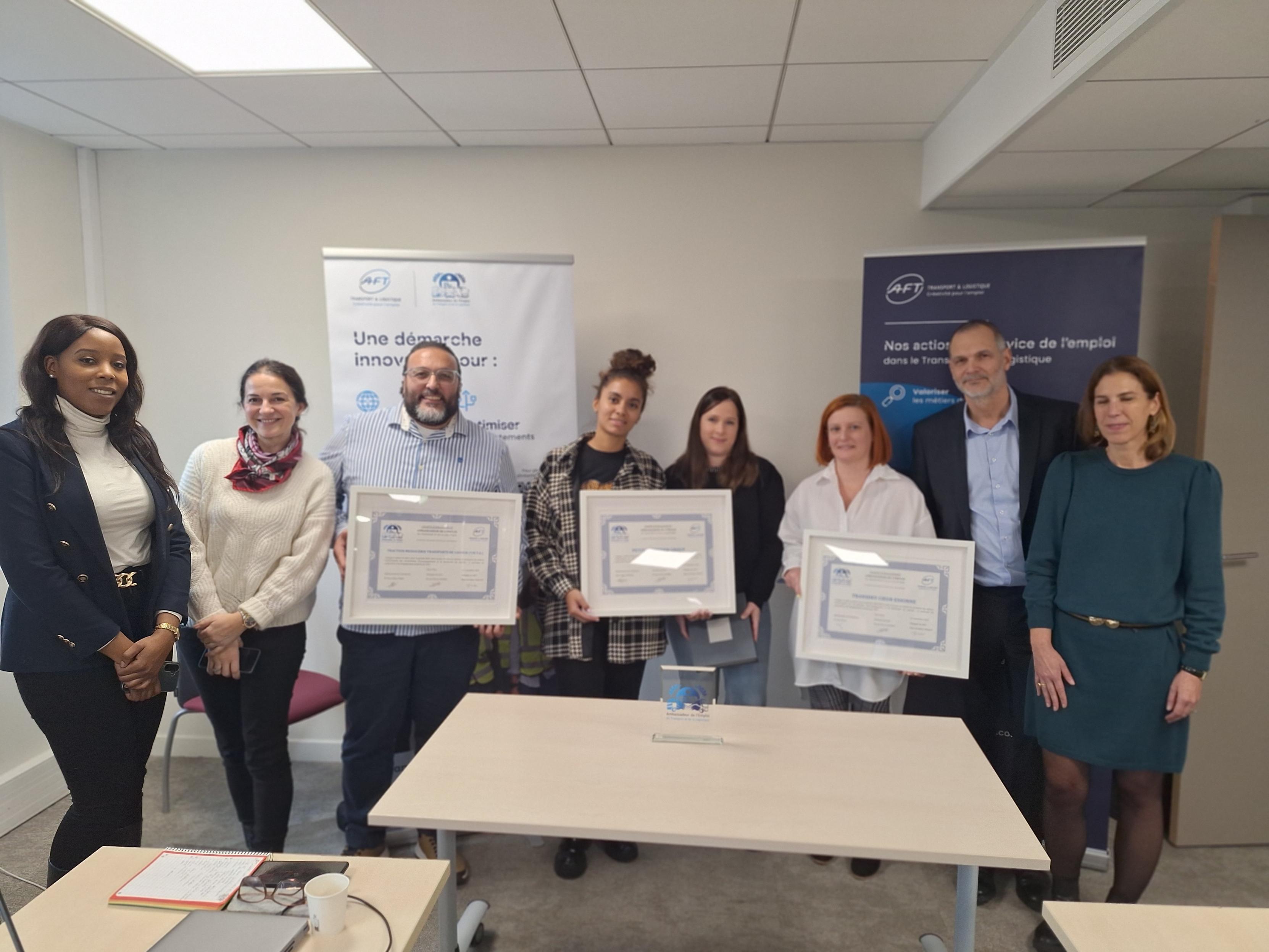 Lors de cette réunion, nous avons également remis les chartes et trophées à nos nouveaux Ambassadeurs de l’Emploi du Transport et de la Logistique : Petit Forestier, Transdev 91 et TMTA 95.