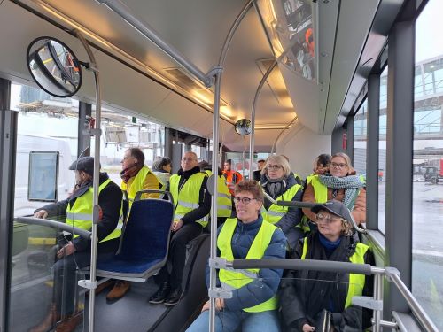 La visite commentée de la zone sécurisée en bus a permis de voir les différents types d’avions dédiés au transport de marchandises, d’assister à des opérations de chargement et de mieux comprendre les enjeux de sûreté et de sécurité.