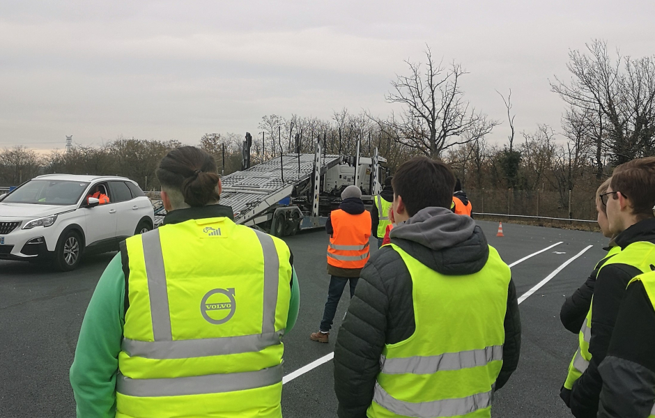 A l'occasion de la remise de la Charte Ambassadeur de l'Emploi du Transport et de la Logistique, l'AFT Centre-Val de Loire et Transcat Centre ont proposé aux élèves de première du Bac Professionnel Conducteur de Transport Routier de Marchandises du Lycée Polyvalent Balzac d'Alembert (Issoudun) différentes activités en lien avec leur activité si particulière de transport de voitures.