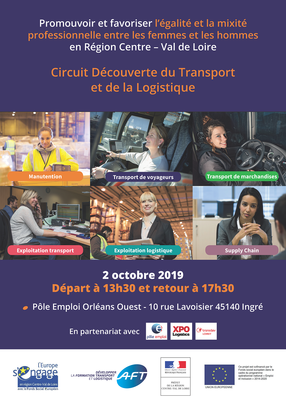 Une action réalisée avec le concours financier de l'Etat et en partenariat avec Pôle emploi, XPO logistics et Transdev Loiret