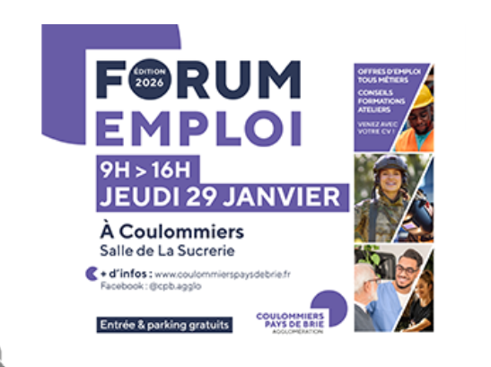 L'AFT Ile de France sera présente, le 29 Janvier prochain à la13ème édition du Forum de l'Emploiorganisée par la communauté d'agglomération Coulommiers Pays de Brie, en partenariat avec France Travail, Cap Emploi et la Mission Locale de la Brie et des Morins.