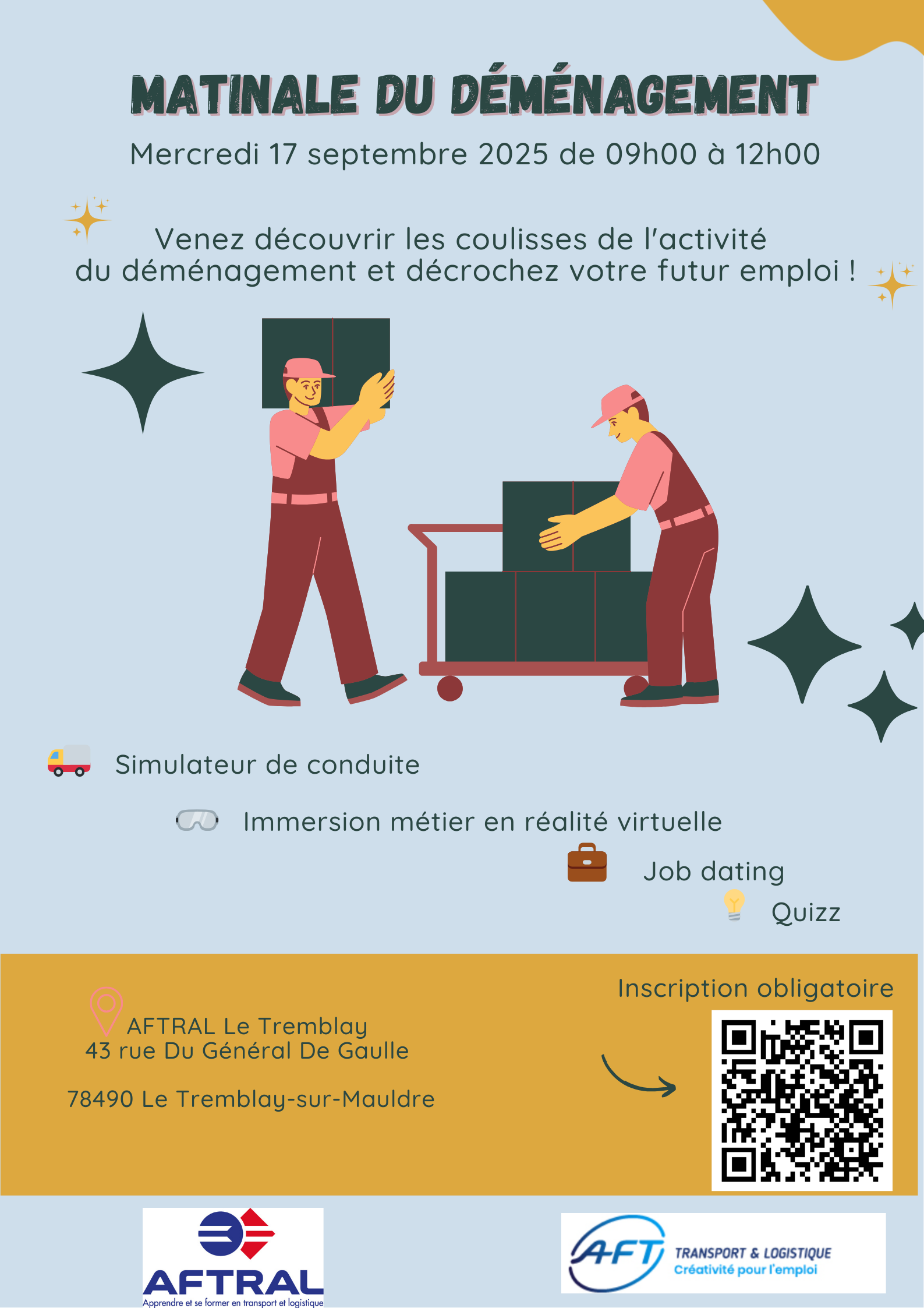 C'est l'occasion idéale de découvrir les métiers du déménagement, d'échanger avec des professionnels et de vous former!
