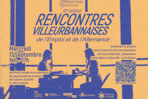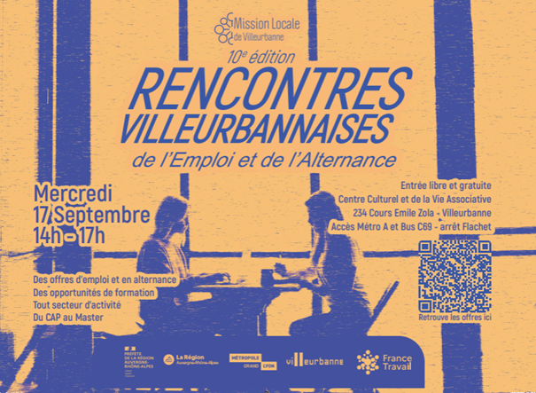 Mercredi 17 septembre 2025 de 14h à 17h aura lieu la 10ème édition des Rencontres Villeurbannaises de l’Emploi et de l’Alternance au CCVA de Villeurbanne.
