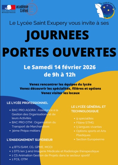 Samedi 14 février : JPO Lycée Saint Exupéry de Créteil