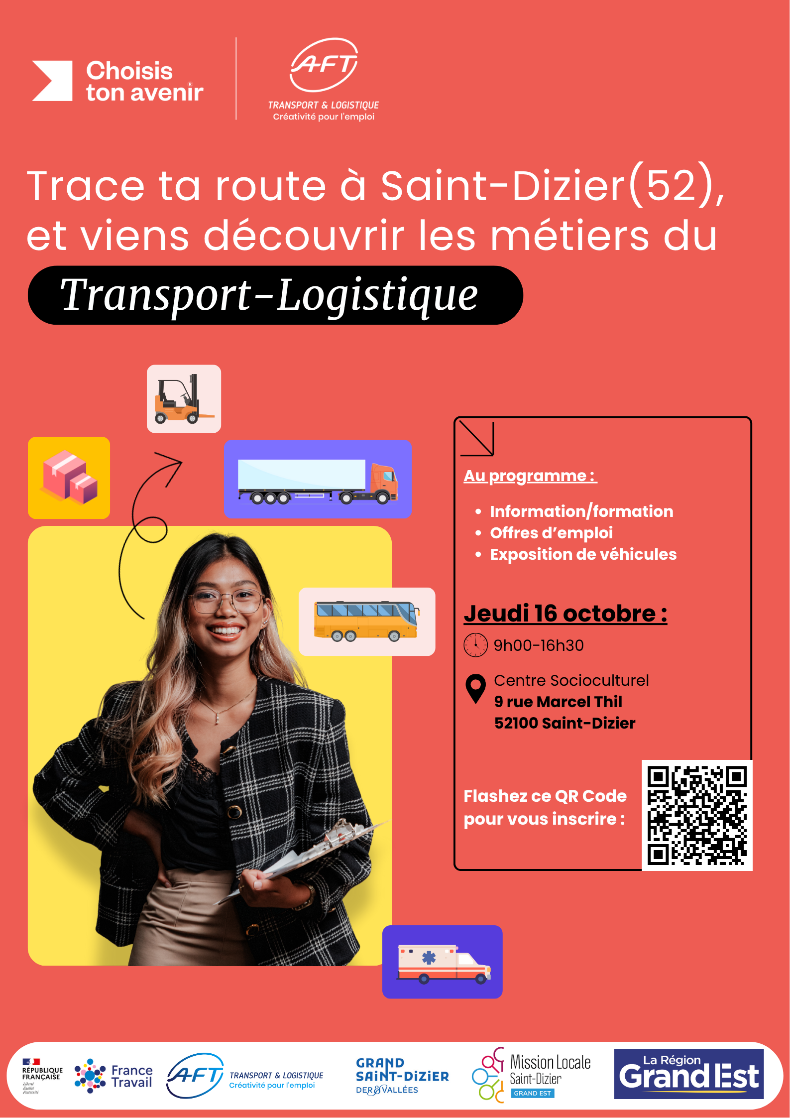 Nous organisons une journée d'orientation et de découverte des métiers et des formations du Transport et de la Logistique au Centre Socioculturel de Saint-Dizier, 8 rue Marcil Thil.