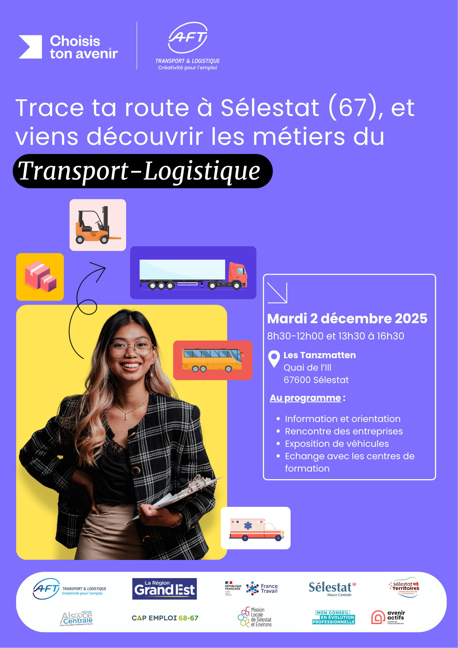 Que vous soyez étudiant, demandeur d’emploi, professionnel du secteur ou simplement curieux, « Trace ta route » est l’occasion idéale pour découvrir les perspectives offertes par les métiers du transport et de la logistique.
