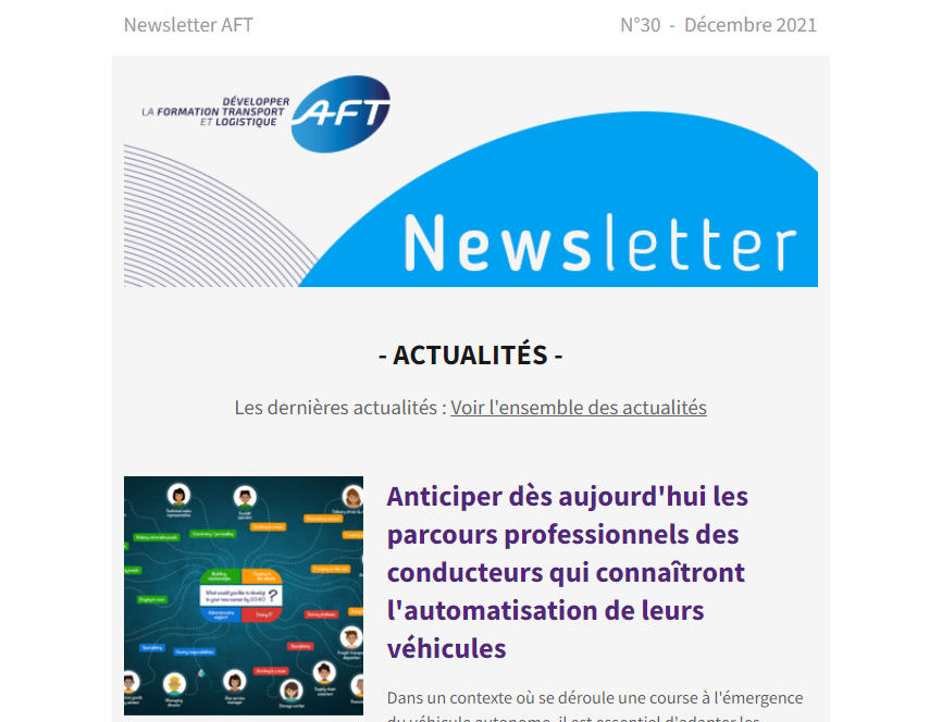 Dans un contexte où se déroule une course à l'émergence du véhicule autonome, il est essentiel d'adapter les infrastructures qui y sont liées, parmi elles : la formation des conducteurs. Une étude des impacts des changements induits par cette automatisation est nécessaire afin d'accompagner les conducteurs et faciliter la transition face à de telles évolutions. Ainsi, la participation de l'AFT au projet européen Steer to career a permis une réflexion quant aux parcours professionnels des conducteurs à horizon 2040, notamment à un niveau 4 d'automatisation.